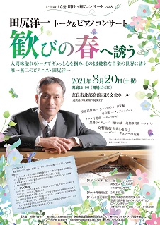 大盛況のうちに終了しました。ありがとうございます。「市民みんなで創る音楽祭」に稀代のアーティスト田尻洋一が生駒にやってきます。